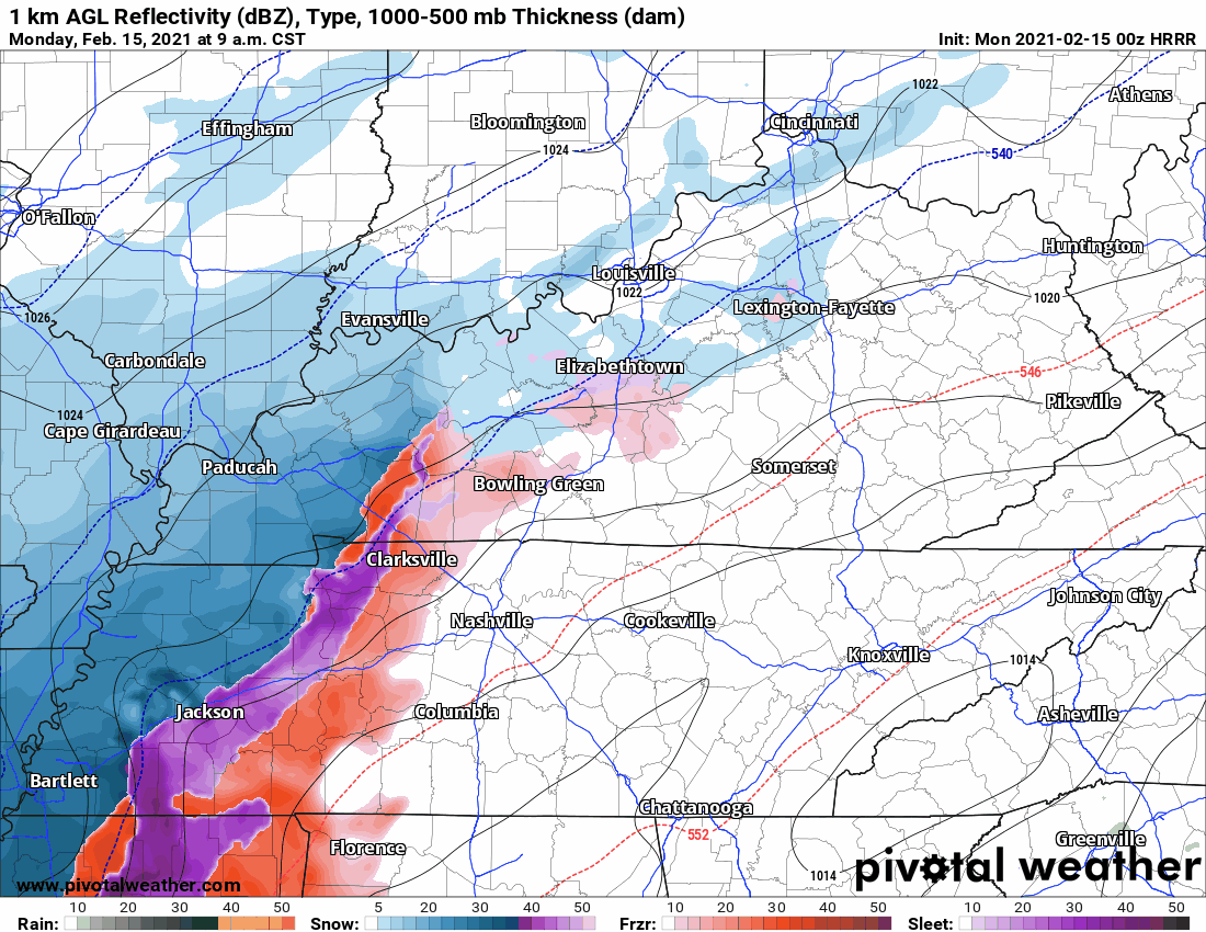 Then only a few hours of snow. HRRR model shows “snow” at 8 inches but the model counts sleet and snow the same. No way we get even close to that if we only have a few hours of snow. Editor’s Note: We’re not getting 8″ of anything. It counts sleet as snow but sleet is way more compact and won’t accumulate like snow does.