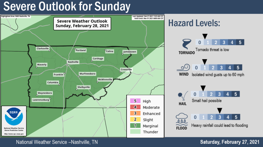 The above graphic is showing a forecasted amount of multiple inches, and that has triggered a flood watch through Monday morning. Creeks, rivers, drainage ditches will remain full and may exceed flood guidance, triggering flood warnings tomorrow night. An isolated 4″ of rain for some us is not out of the question. Flash flooding will be of most concern in areas that receive a lot of rain yesterday. Creek and river levels can be checked here… NashSevereWX Flood Resources