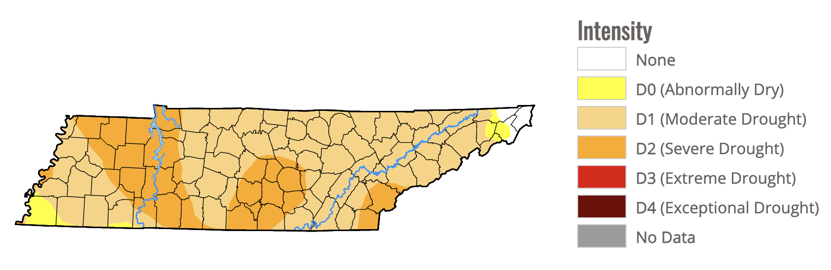The weekly drought map was released this morning. Remember, the data cutoff for this map is Tuesday morning, so we’re sure to see improvement in next week’s map from this past Tuesday night’s big rainer. But, alas, the drought remains.