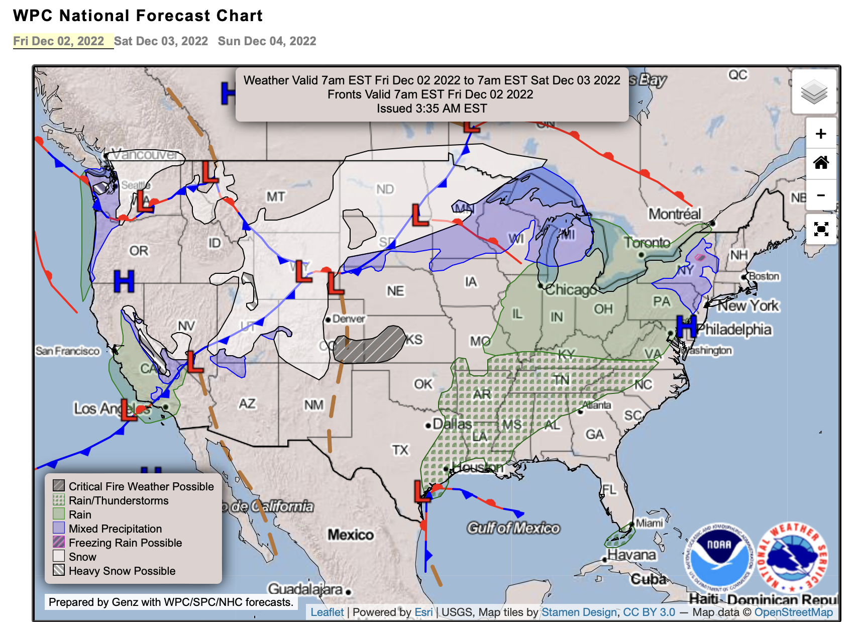 The weather prediction center is forecasting general rain and thunderstorms for the next 3-5 days as a few systems roll by this weekend and next week.