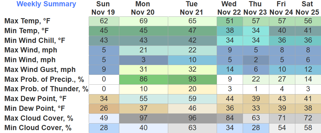 Thanksgiving still looking like temps around average. Some models want to throw some light rain in the mix, but others disagree. We’ll have to wait and see.