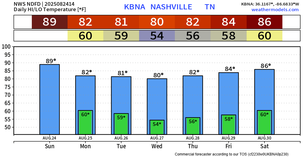 Temps slowly start to creep back up into the mid 80s by next weekend, but even then, it’s still below average (by just a few degrees).
