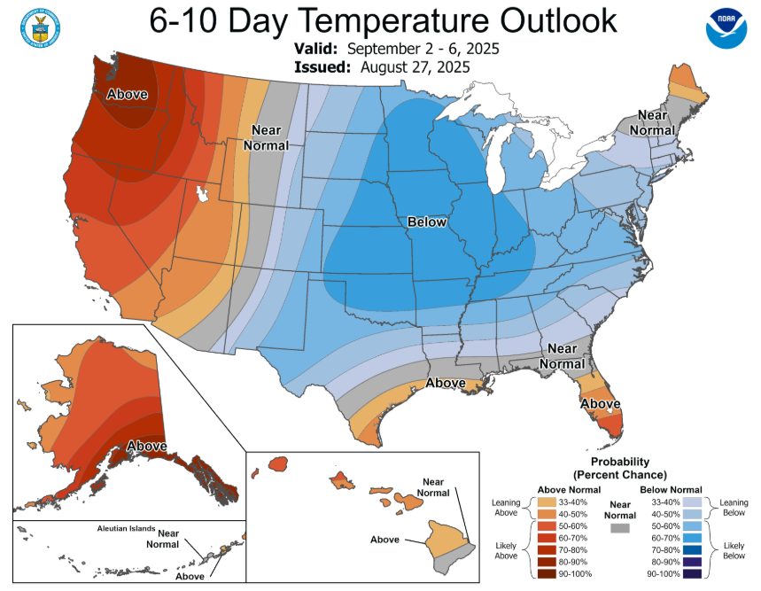 The CPC suggests we see a return of below-average temperatures around September 2-6. Will it be cool enough to deem another False Fall – we’ll have to wait and see.