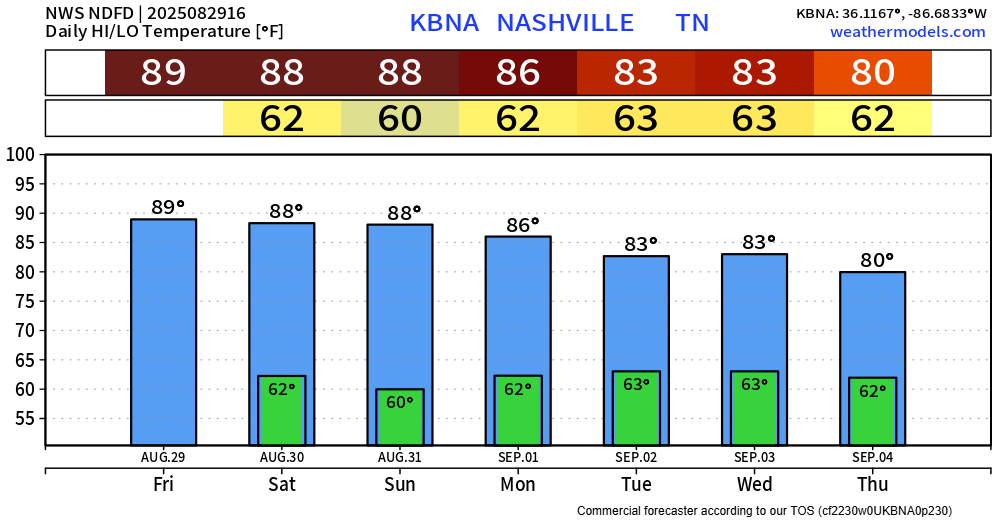 Below average temps return by the middle of next week – they just can’t stay away. Almost like they know it’s football season.