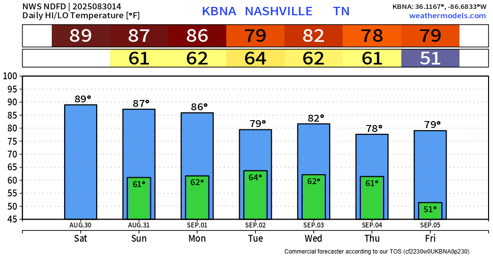 Right around average to slightly above average temps will be with us throughout the Labor Day weekend. Dewpoints will still be in the 50s – so not too bad. Good enough to watch some football.