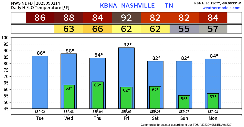 High temps stay relatively warm throughout the week, even peaking in the low 90s on Friday. Dewpoints will also be in the 60s throughout the work week, so that won’t help anything.