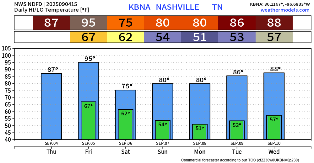 Today and Friday will also be fairly warm, Friday you can just say hot. Highs Friday will climb into the mid 90s, heat index values near 100°.