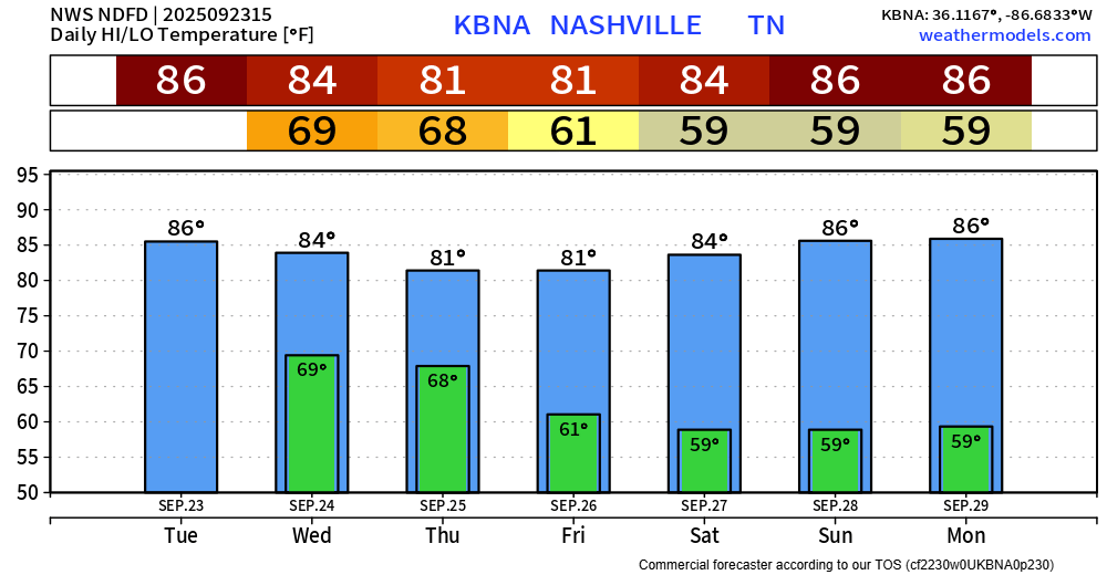 Temps remain around to slightly above average. Still no signs of true Fall weather.
