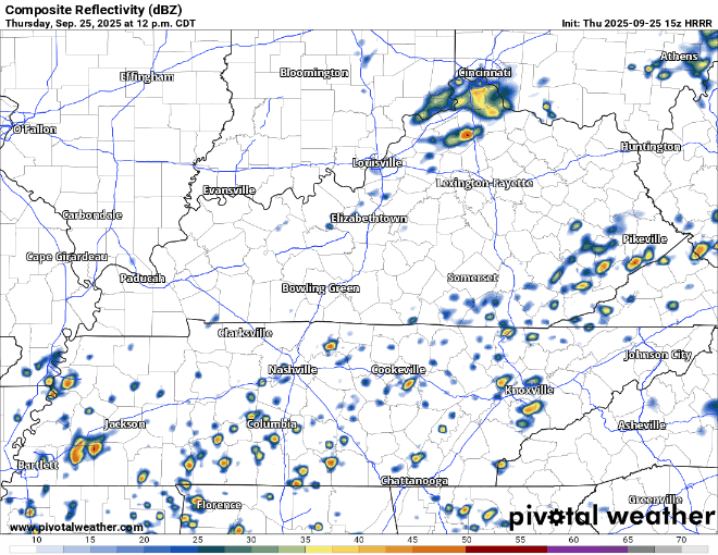 Some scattered showers and storms will be possible this afternoon and evening thanks to a “cold” front moving thru – most of us will probably stay dry.