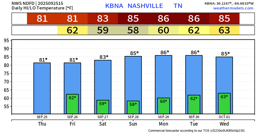 That “cold” front will bring in slightly drier air, really not much difference in temperatures, as seen in the graph below.