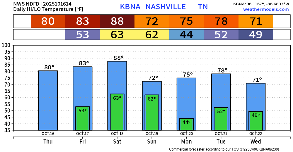 Today, Friday, and Saturday during the day will be warm and dry. Saturday’s current forecasted high is 88°, which would be a new daily record.