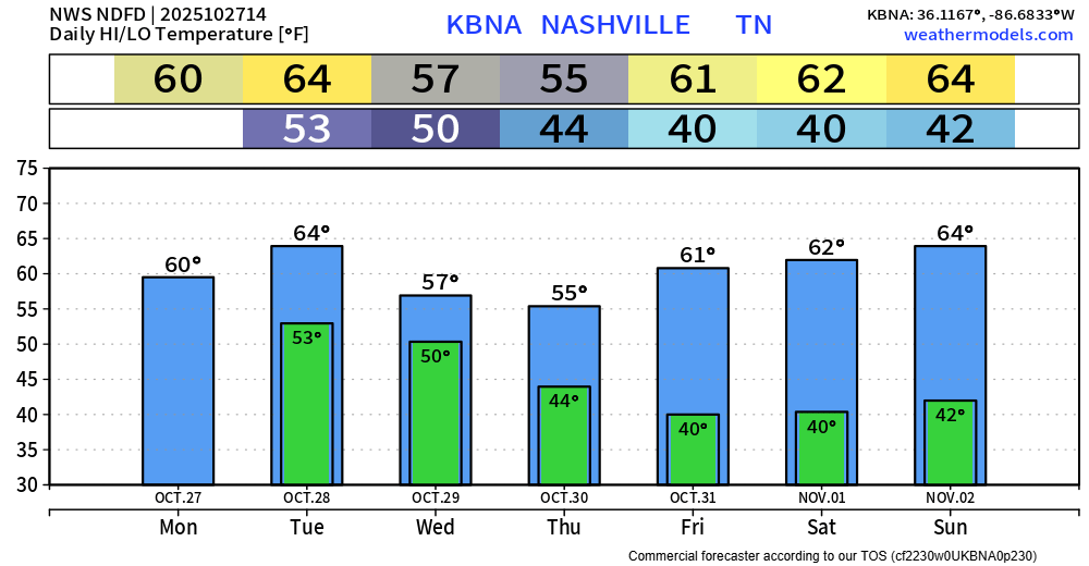 Temperatures throughout the week will be fairly cool, I’m particularly looking at Wednesday and Thursday, when highs aren’t expected to get out of the mid 50s. We do have yet to reach the freezing mark, which today (Oct. 27) marks the average date of the first Fall freeze. It’s coming, just a little later than average this year.