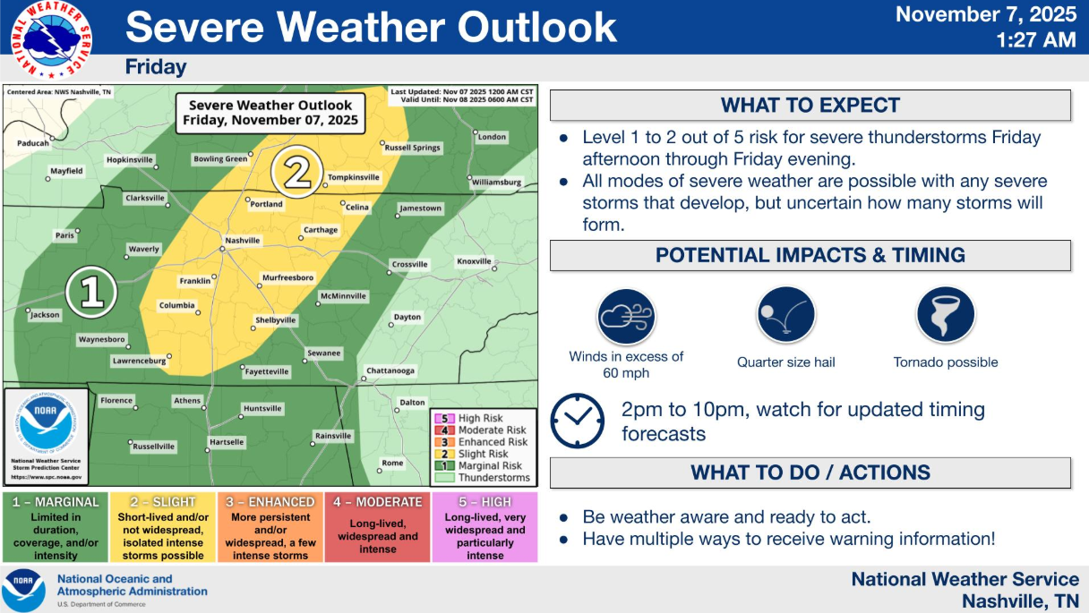 As a reminder, this remains a low-end threat. There’s a 95% chance you don’t see a tornado within 25 miles of you. Those are some pretty solid odds, but it isn’t a guarantee. Don’t let this threat sneak up on you, know what to do if a warning is issued for you. Also, for those of you new to the area – first off, welcome. Secondly, be able to pinpoint your home/work on a map. You won’t know if a warning is issued for you if you don’t know where you are! We have a great article here with more on preparing/what to do: What To Do | Nashville Severe Weather