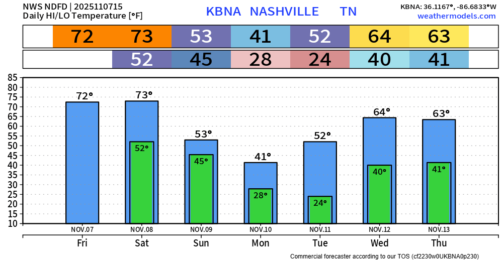 Models think we stay dry all of Saturday now. All in all, it will be a really nice day with temps getting into the low 70s. That will probably be the last time we see 70° for a while, so I’d recommend making outdoor plans if you don’t have some already.