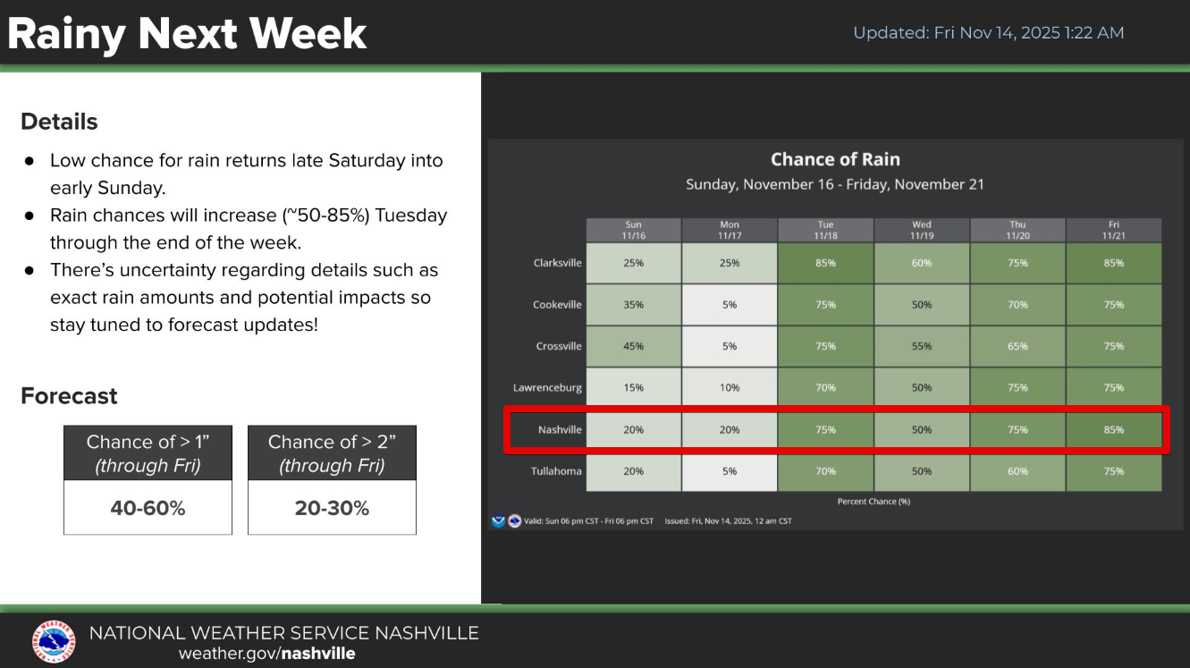 Rain chances will start to increase Monday night into Tuesday – we’ll then deal with what looks like several rain chances thru the end of next week. Currently there are no flooding or severe concerns, but we should get some healthy rainfall totals by the time next week ends. Specific deets on timing and such are still fuzzy, as expected this far out. We’ll keep y’all updated as the details get sorted out over the next couple of days.