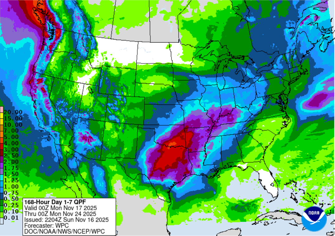 As noted in the quote above from the great minds at NWS Nashville, heaviest rainfall totals over the next 7 days will likely be well to our west.