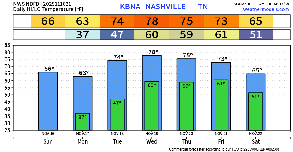 “The severe weather and flooding threat with the system continues to look minimal as instability is very low and the higher rain totals are expected to stay west and north of Middle Tennessee.” – NWS Nashville Area Forecast Discussion