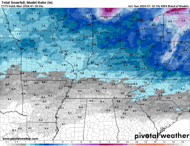 The GFS model isn’t as impressed. Shows a lot less support for big snow.