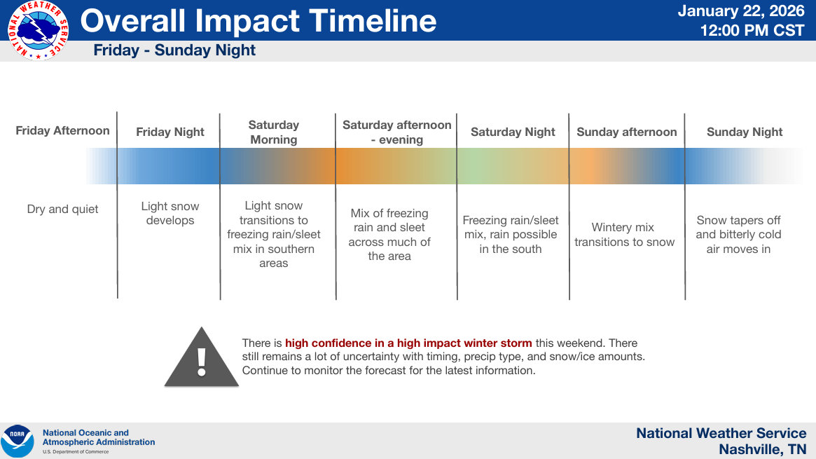 The graphic below from NWS Nashville shows a breakdown on current thinking for timing.