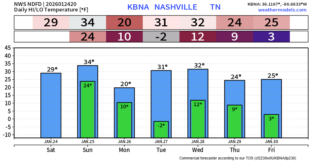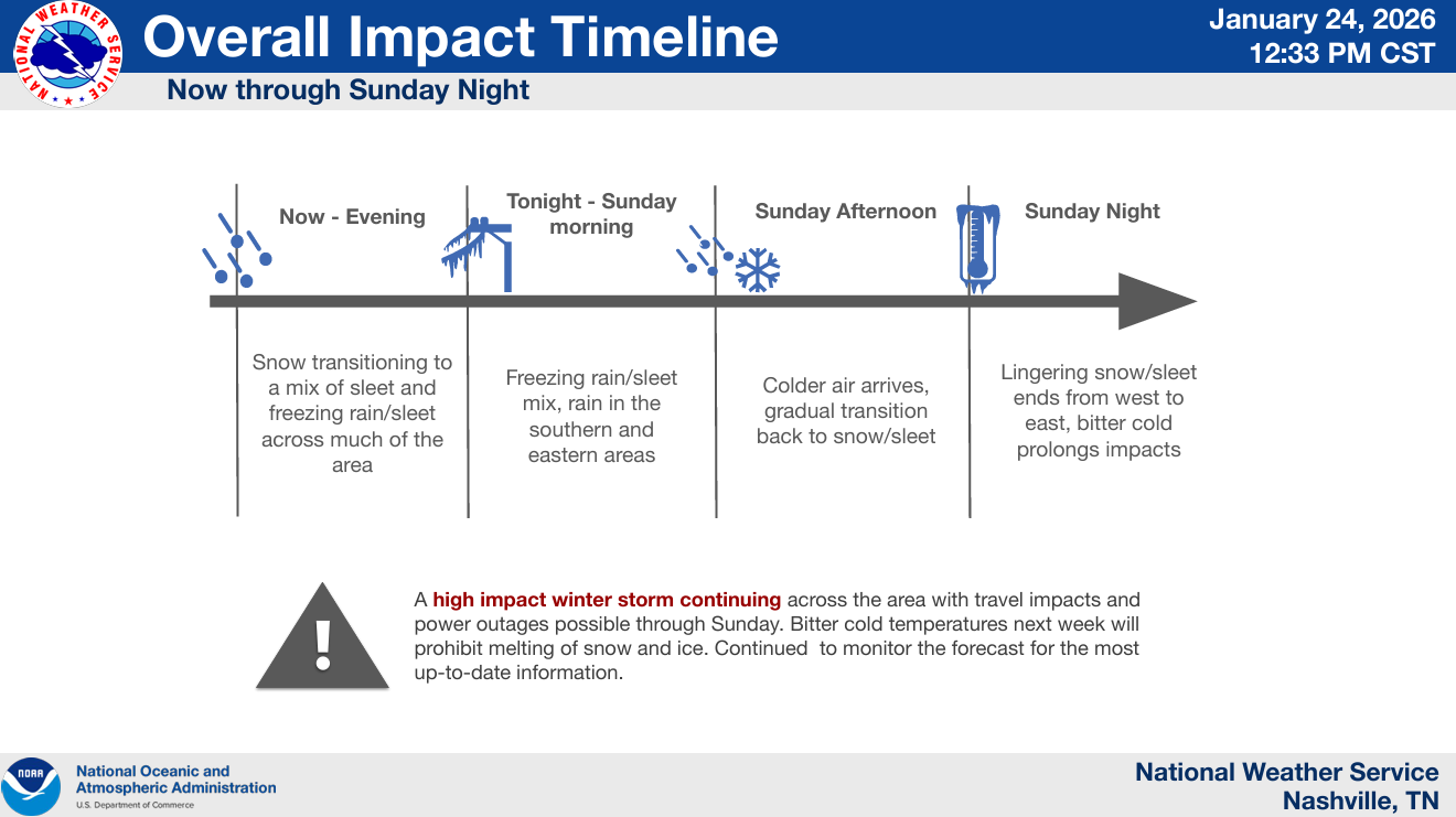 “Again, for those that lose power, this will be a critical time with multiple nights of temperatures in the teens. Please, check on your people, make sure they’re safe and have warm shelter.” – NWS Nashville