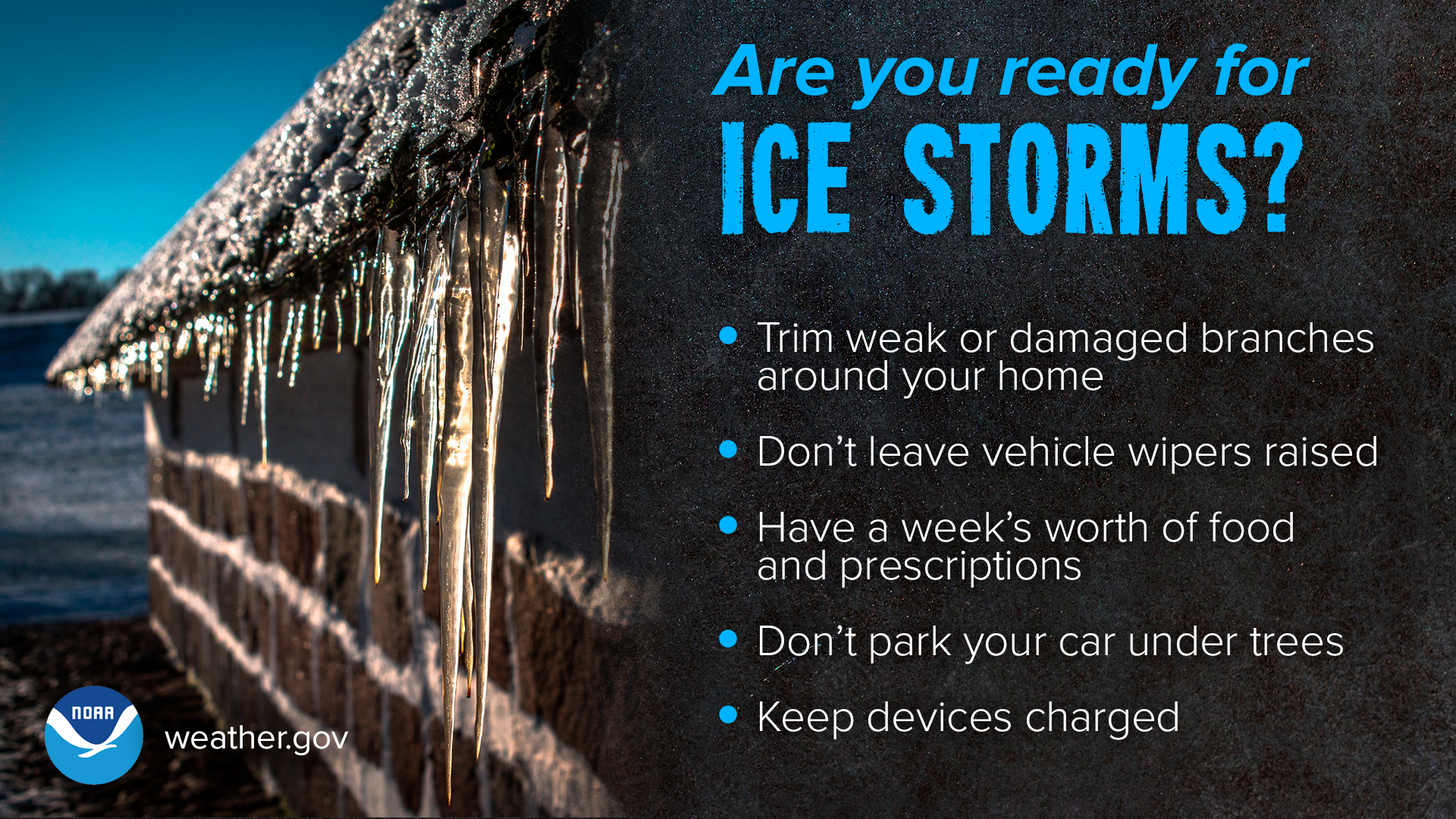 With power outages possible, now is the time to prepare for impacts. Have ways to keep warm if you do lose power, practice safety with generators (emphasis, please use generators safely) and indoor heat sources. Check in on your neighbors, especially those that may be elderly.