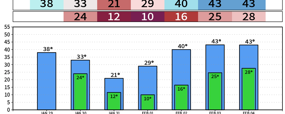 We’ll make it back above freezing midday Monday and will enjoy a few days reaching 40°.