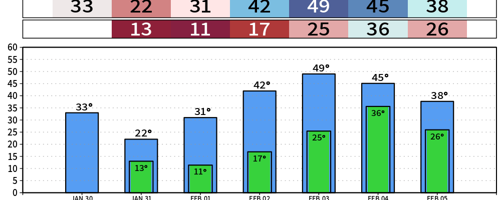The good news is that highs will be in the 40s Monday thru Wednesday, even getting close to 50° on Tuesday.