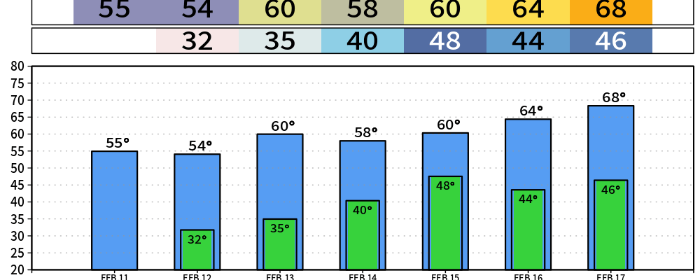 We’ll experience a slow warming trend as we get into this weekend, although not as warm as the 77° we saw on Tuesday, but still comfortably above average.