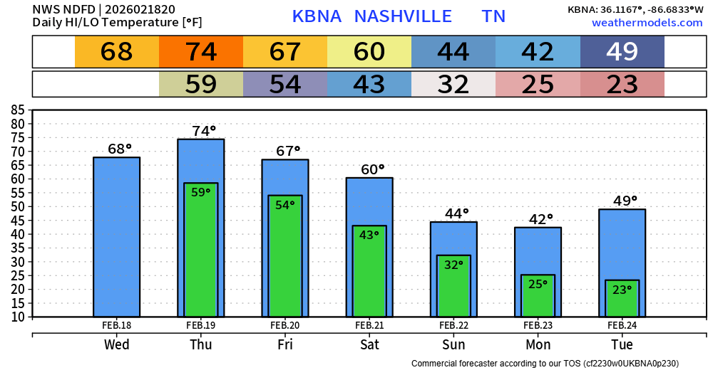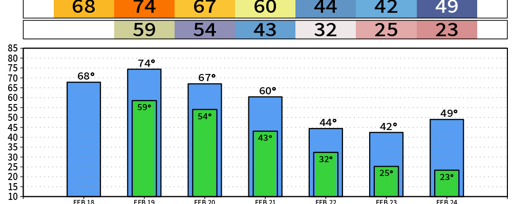 Our temperatures stay above-average thru Saturday. Then our cold front will knock us down below average early next week.