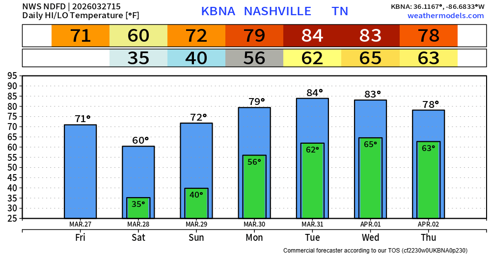 As always, we’ll keep an eye on things – but this is a good reminder that we are heading into our more active portion of the year severe weather wise (based on climatology). It’s as good of a time as any to review your severe weather plan! We have more info on that here: What To Do: Tornado Watch vs. Warning – Nashville Severe Weather