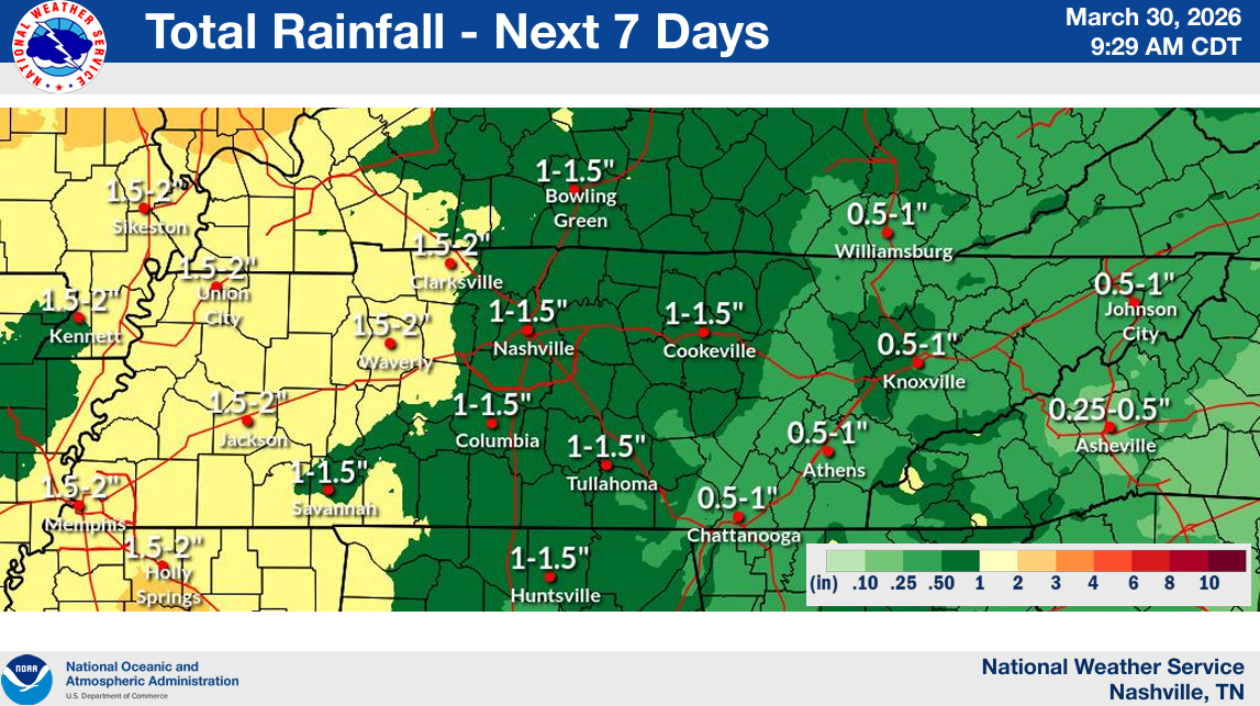 However, this will bring at least some decent rainfall totals. Helpful, since we are about 5″ below average on rainfall so far this year. Totals look to be in the 1 – 1.5″ range over the next week. Won’t totally erase our deficit, but it’ll help – and also low enough to avoid any flooding concerns.