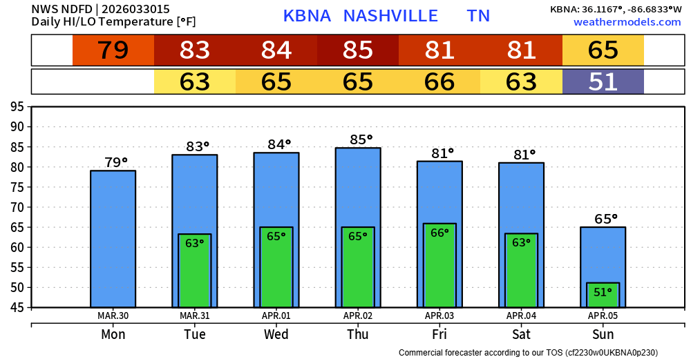 Highs in the low to mid 80s will be common thru Saturday. Hello Spring.