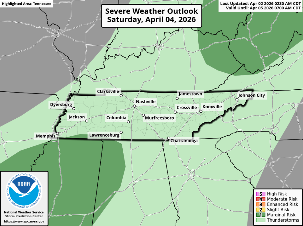 While some general thunderstorms are possible along the line, chances for any severe weather look slim to none right now. Models continue to suggest that the necessary ingredients just won’t come together. The Storm Prediction Center agrees and excludes us from any severe weather probabilities.
