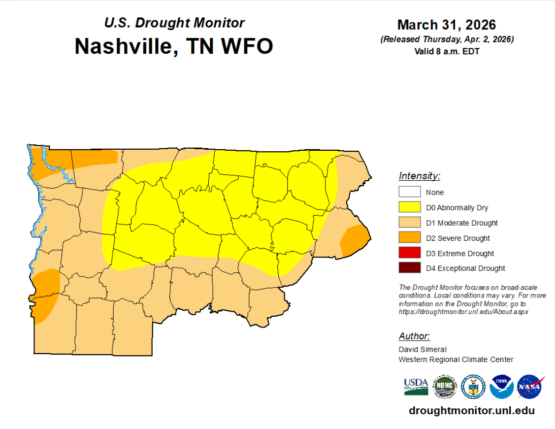 Speaking of dry, we have been recently. This upcoming rainfall (around 1″) will help, but it won’t completely resolve things. New Drought Monitor update shows both of our counties engulfed in the Abnormally Dry category.