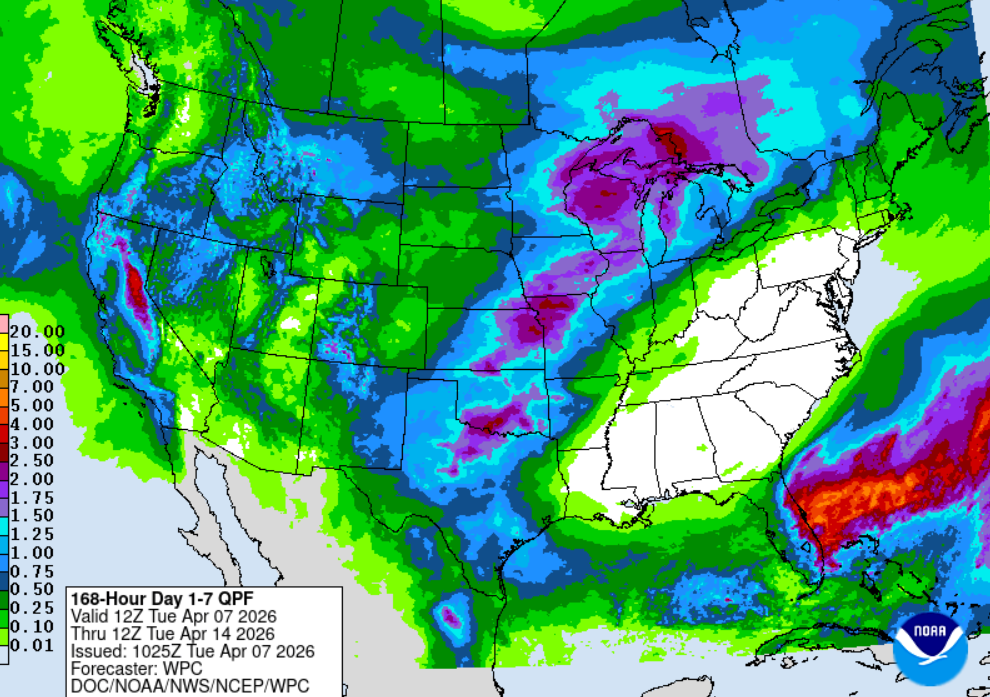 The total rainfall map from the WPC shows the story quite well. We aren’t alone in this, as most of the southeast and Mid-Atlantic will see very little to no rain during this time as well.