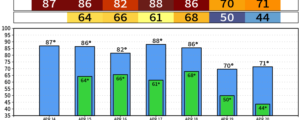 Today we’ll have plenty of sun to help our high temperatures surge into the mid to upper 80s. Our daily record high is 89° (set in 2017), so we’ll see if we can make a run at it.