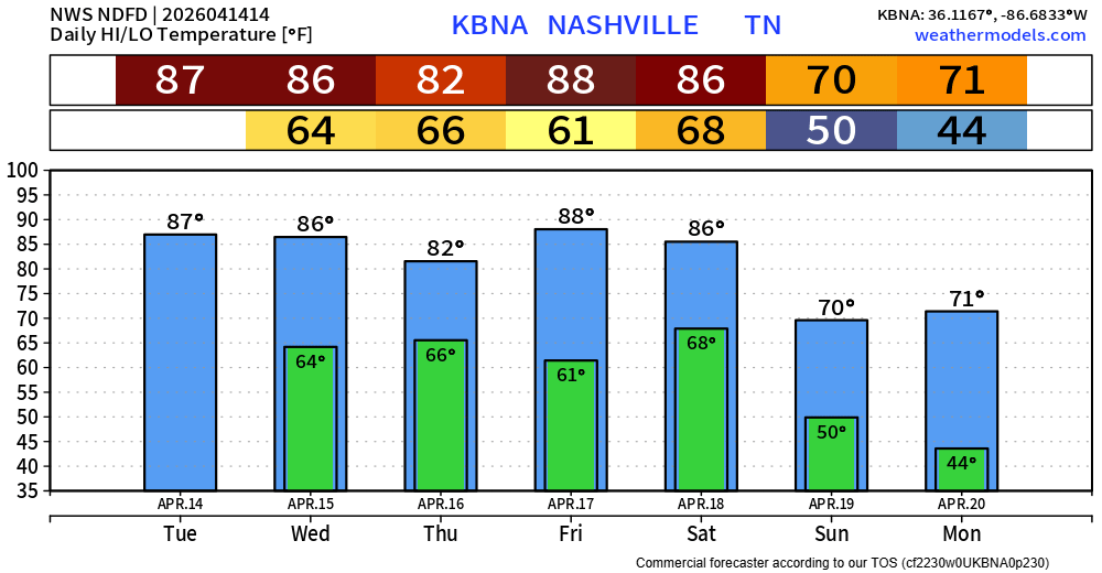 BNA reported a total of 0.02″ of rain yesterday, which was nice to keep the temperatures down a little, but won’t do much at all in terms of helping us with our worsening drought.