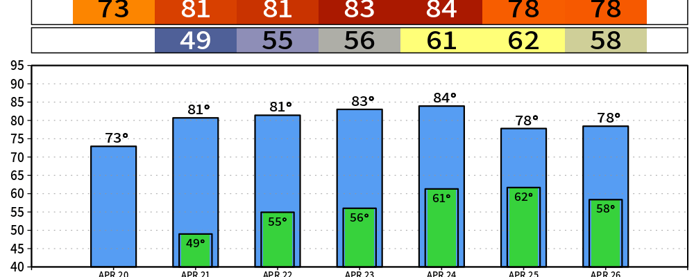 Temperatures will gradually warm up throughout the week, returning to the low to mid 80s. Humidity levels will be tame, so it’ll be a fairly tolerable low to mid 80s.