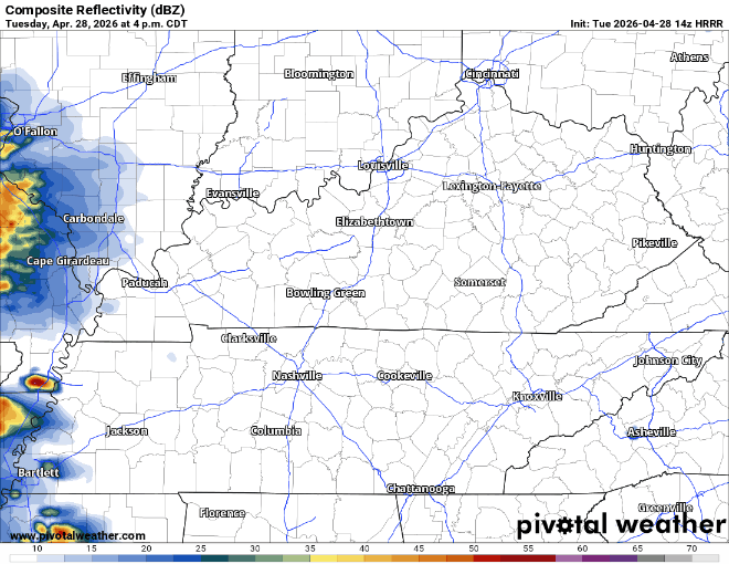 This will likely be a cluster of storms that moves in from the W. We’ll be able to see it as it is moving our way to get an idea of what to expect. It also wouldn’t totally shock me to see a cell or two fire out ahead of the main cluster, which would mean a slightly earlier ETA.