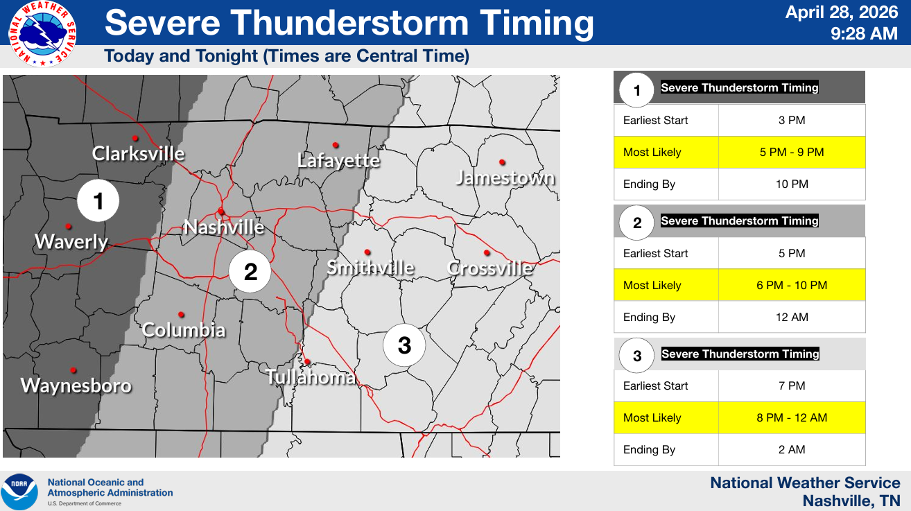 The most likely ETA for this appears to be 6-10p this evening. Thankfully, this does not look like an overnight event. We’ll be able to sleep peacefully after the storms move out.
