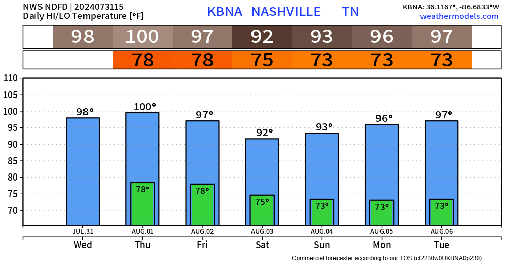 Although it’ll still be hot, it’s still summertime after all. Dewpoints will be in the upper 60s this week, making the heat a bit more manageable.