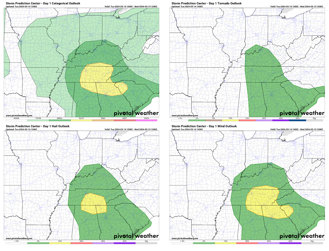 On/off showers will be possible thru this evening. Some of us will stay dry, but some may see a brief shower. Impossible to know who is in and who is out. HRRR model below gives its best guess.