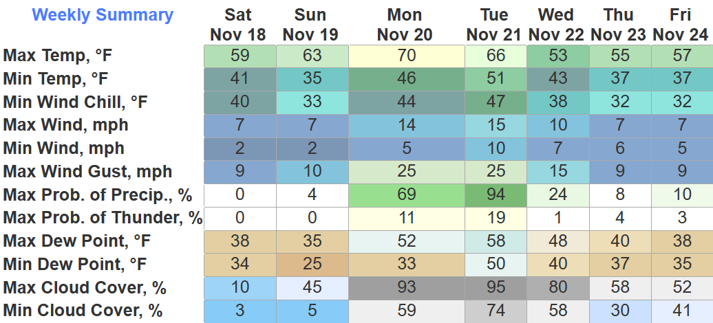 This will be a common theme Monday – Wednesday. Thursday high temps finally warm up to the 60s and they’ll stay there as we enter December.
