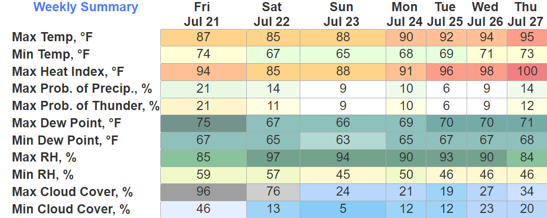 Another day, another Heat Advisory from noon to 7pm. Heat index values up to 108° possible.
