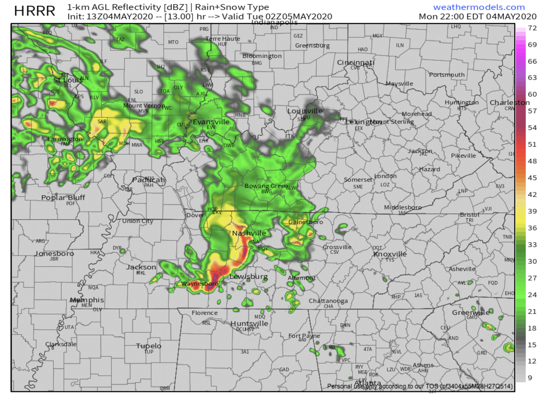 Timing: The HRRR likes the most significant rain coming in two rounds: the first around 2pm and the second around 11pm. In between, there will be some scattered showers.