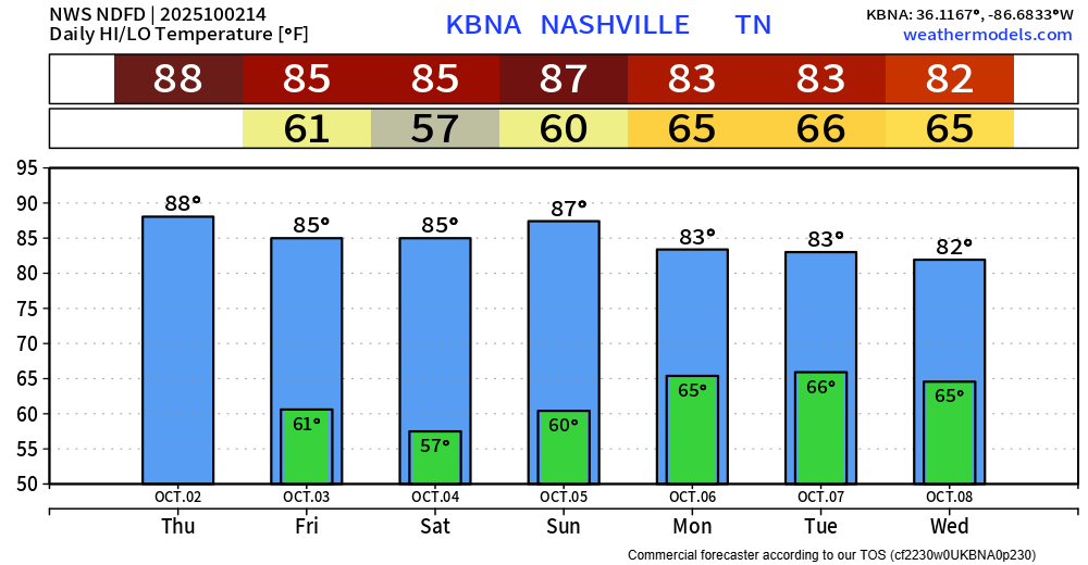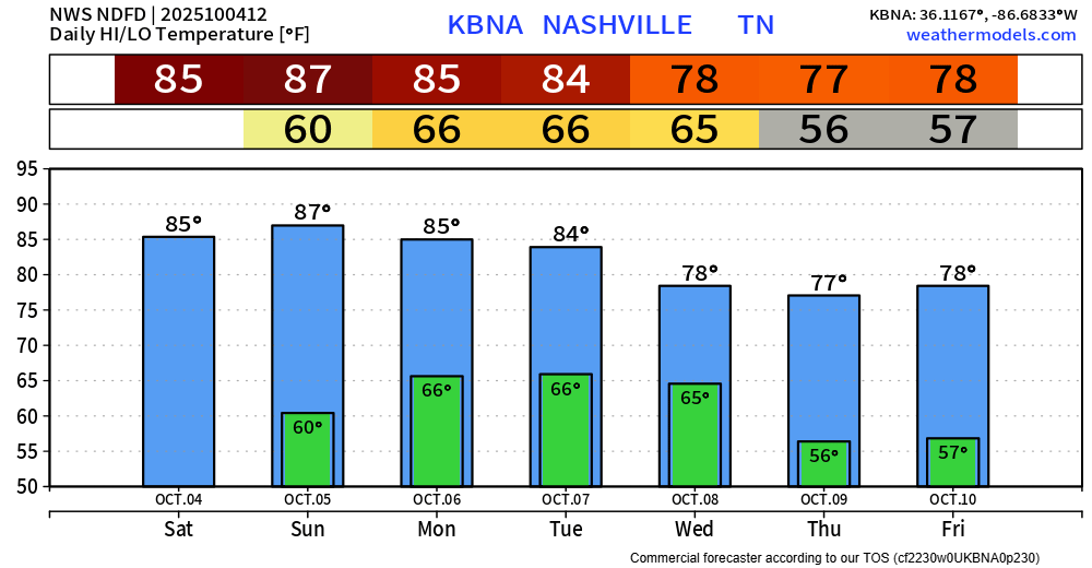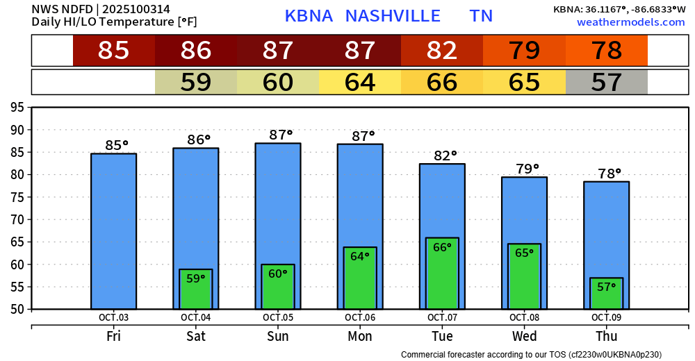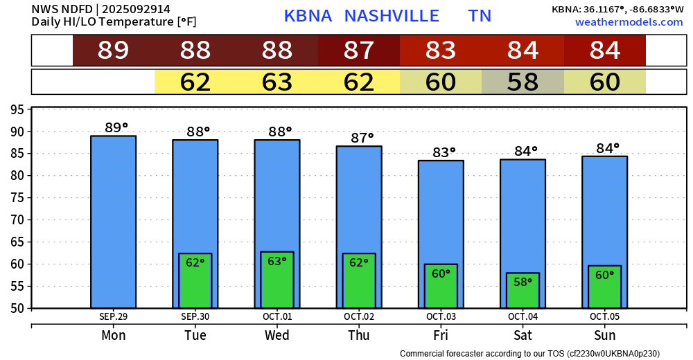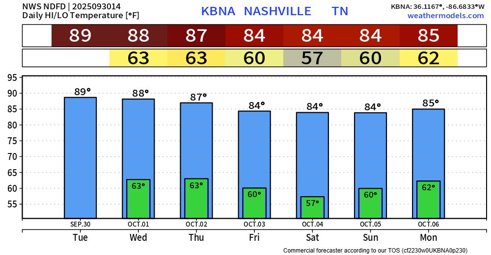 You’ll probably need a light jacket to walk out the door for at least the next 7 days. Lows will bottom out near 50°.
