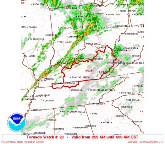 New Tornado Watch until 8 AM just north of us. Storm ETA 6-7 AM.