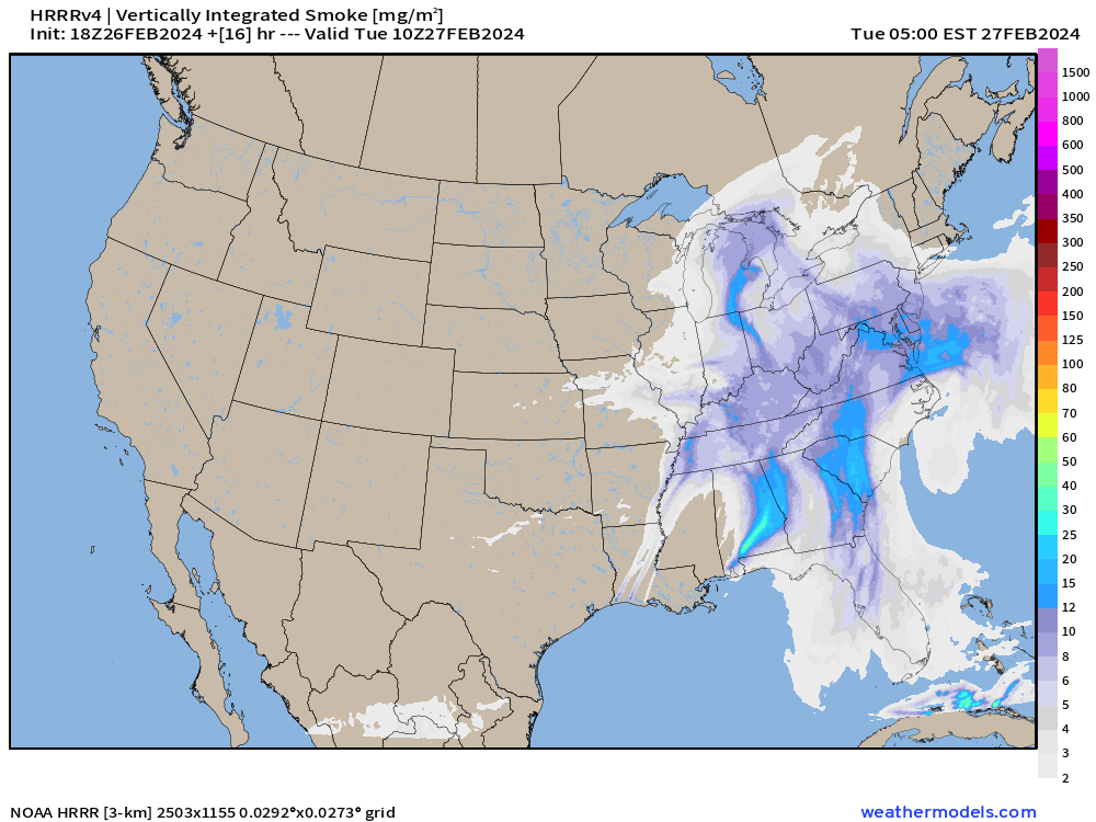 Dirty cars likely due to our 4-6 AM rainfall carrying dust and smoke particles from wildfires. Smoke model from this morning below.