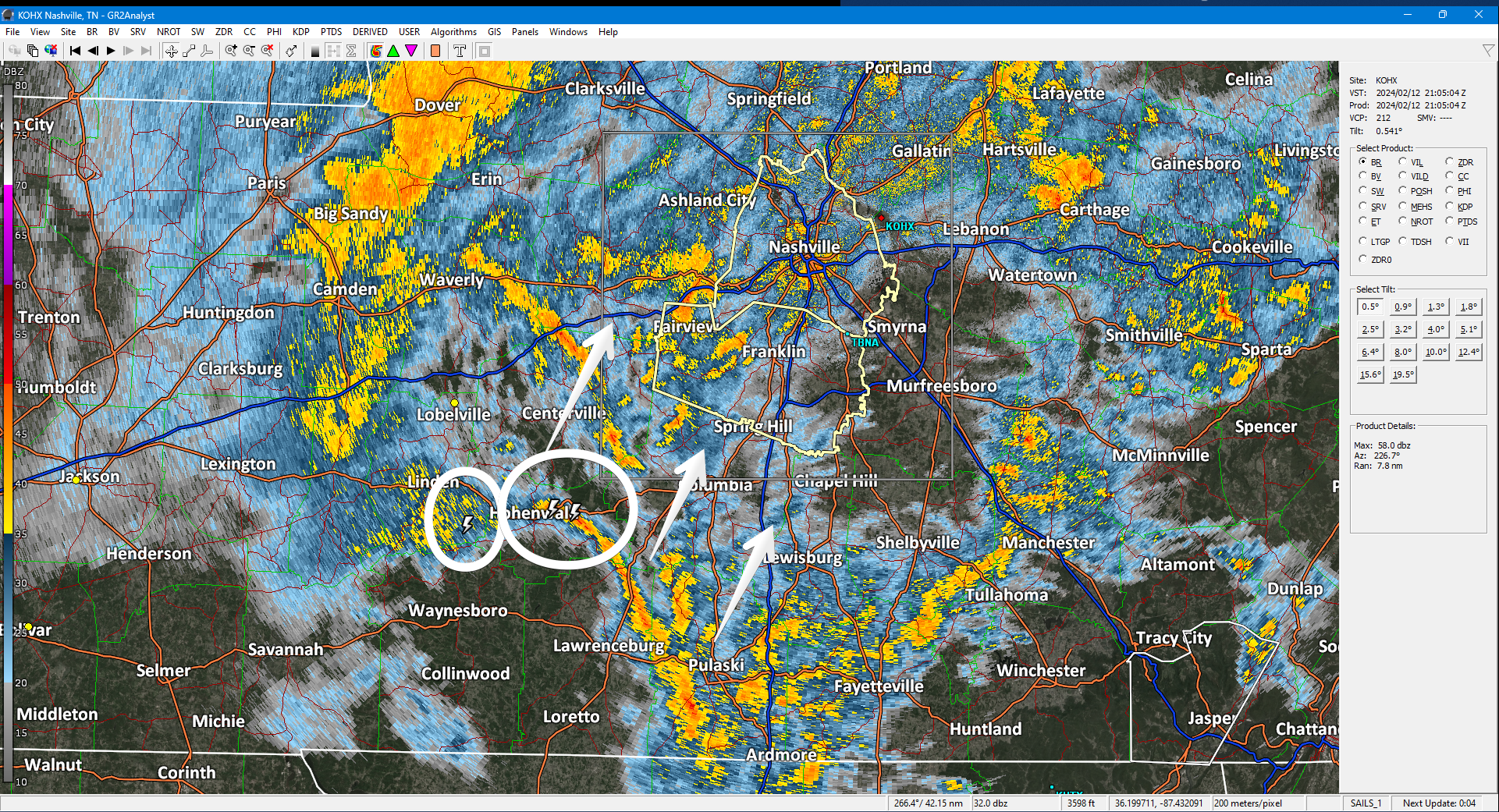 Off/On downpours. Storm center remains south. Some lightning there. Radar below at 305 PM.