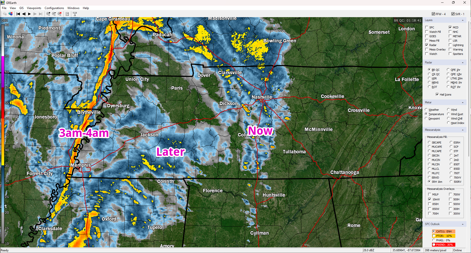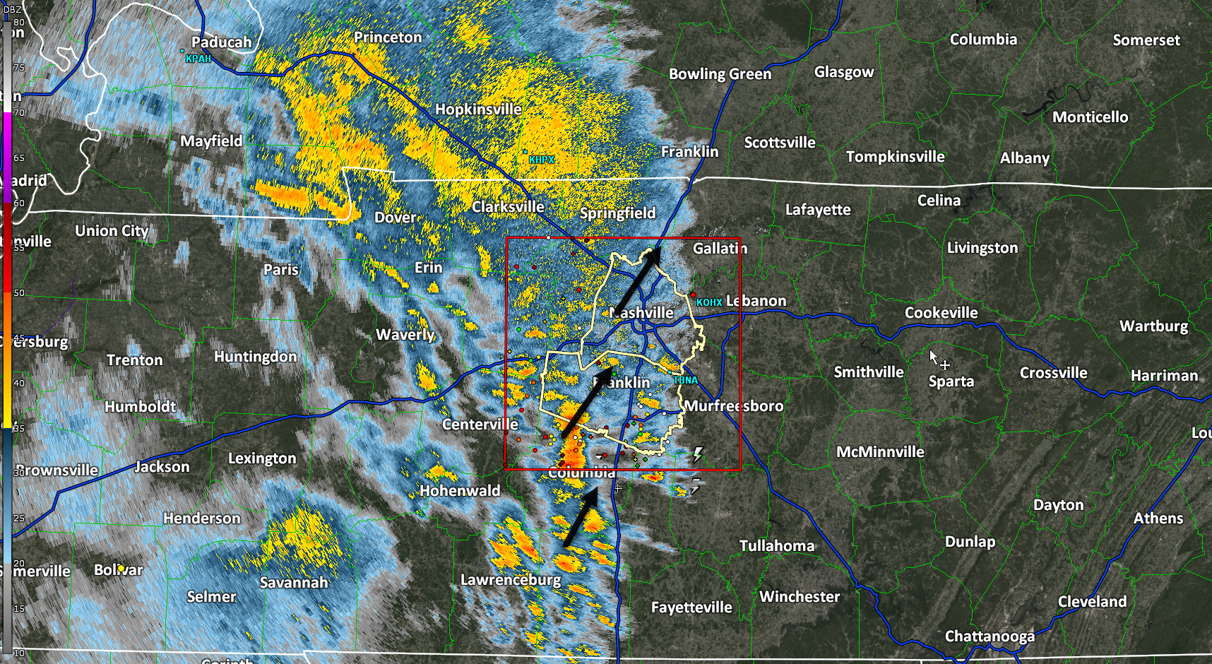 Some heavy rain coming through Franklin. Brentwood and Nolensville next. Then, a break of sorts. Still expecting additional storms later that are about to cross the MS River into W TN.